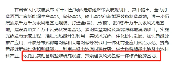 目光看得更長遠些,甘肅省印發了河西走廊經濟帶發展規劃,要依托釷基熔鹽堆,探索建設風光氫儲一體化綜合能源基地,可見野心勃勃。