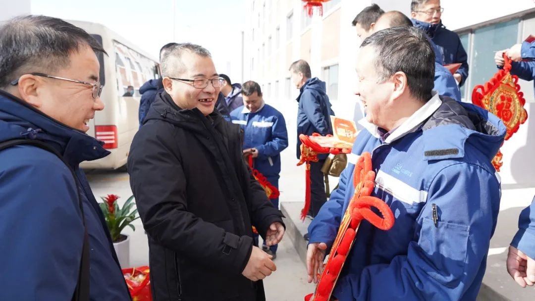春節(jié)期間,公司項(xiàng)目團(tuán)隊(duì)在建設(shè)現(xiàn)場(chǎng)依然熱火朝天、干勁十足。2月4日,正月初四,公司黨委書記、董事長(zhǎng)鐘宏亮,黨委委員、副總經(jīng)理韓建平,工會(huì)主席、總法律顧問(wèn)呂永紅一行深入項(xiàng)目施工現(xiàn)場(chǎng),實(shí)地調(diào)研項(xiàng)目實(shí)施情況,對(duì)奮戰(zhàn)在一線的項(xiàng)目建設(shè)團(tuán)隊(duì)給予充分肯定和高度評(píng)價(jià),向他們致以節(jié)日的問(wèn)候和誠(chéng)摯的祝福并為他們送上慰問(wèn)物資。