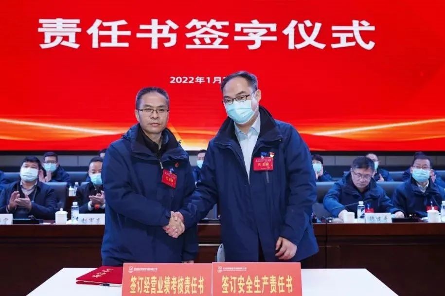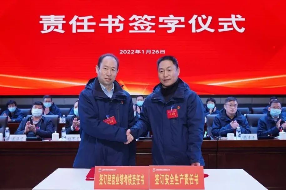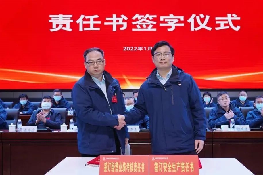 公司黨政主要領導分別與經理層成員、相關單位負責人簽訂2022年經營績效考核責任書、安全生產責任書