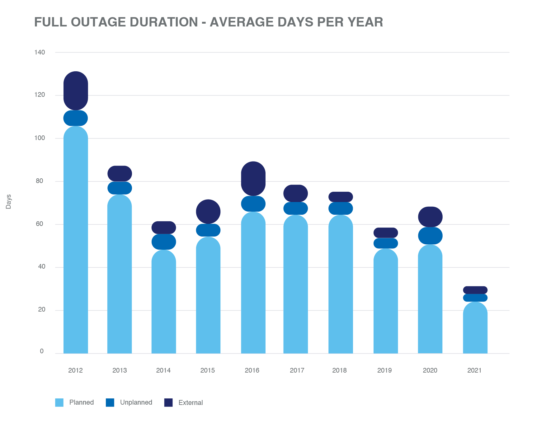 PRIS的統計數據顯示,2021年全面停運的平均時間是過去十年中最短的,這是因為優化了維護和檢查,以及改善了運營管理、安全文化和人事政策。