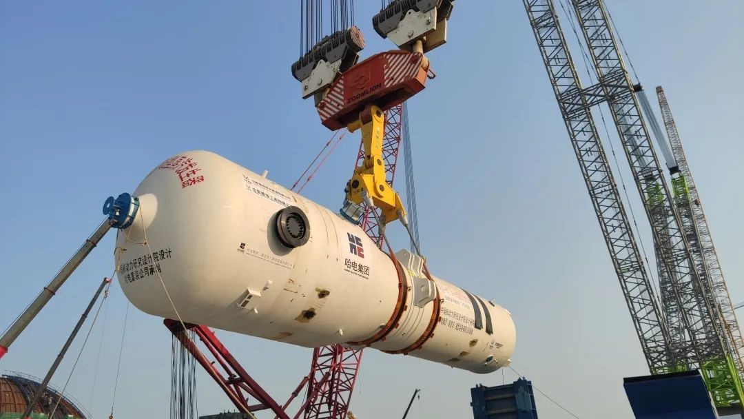 7月29日,首臺蒸汽發生器順利吊裝就位