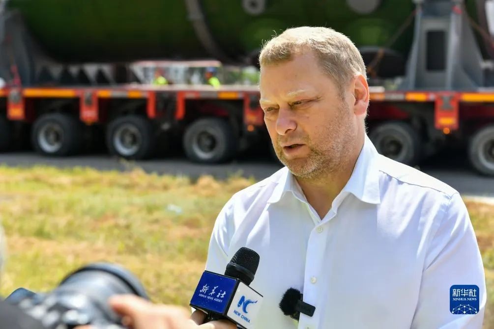 ▲7月11日,在俄羅斯南部羅斯托夫州伏爾加頓斯克市,AEM公司總經(jīng)理伊戈?duì)?middot;科托夫接受記者采訪。