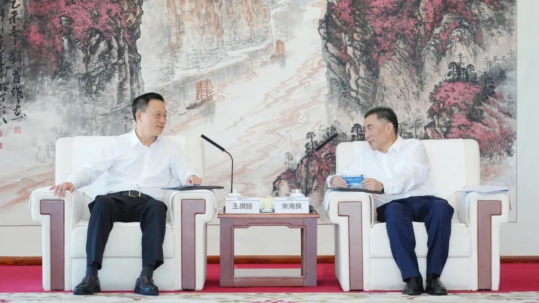 9月7日,中國能建黨委書記、董事長宋海良在貴陽與貴州省委常委、貴陽市委書記、貴安新區黨工委書記胡忠雄舉行會談。雙方圍繞深化清潔能源、數據產業、城市更新等領域合作,推進貴陽貴安“強省會”行動實施,助力貴陽貴安高質量發展進行深入交流。