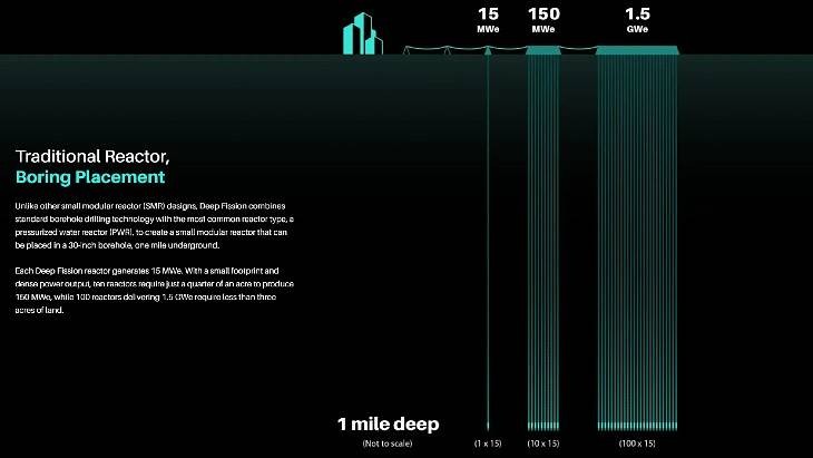 總部位于加州的核能初創公司Deep Fission于2024年8月宣布正式退出隱身模式,其目標是將小型模塊化反應堆(SMR)放置在地下一英里深的鉆孔中。該公司計劃在地下約1英里(1.6公里)處一個30英寸(約76厘米)的鉆孔中建造15兆瓦(MWe)的壓水反應堆,熱量傳輸到地下深處的蒸汽發生器使水沸騰,非放射性蒸汽上升到地面后由標準蒸汽輪機轉化為電能。該公司表示,其反應堆功率可從15兆瓦擴展至1.5吉瓦(GWe)。報告指出,將反應堆置于地下可利用周圍地質條件...
